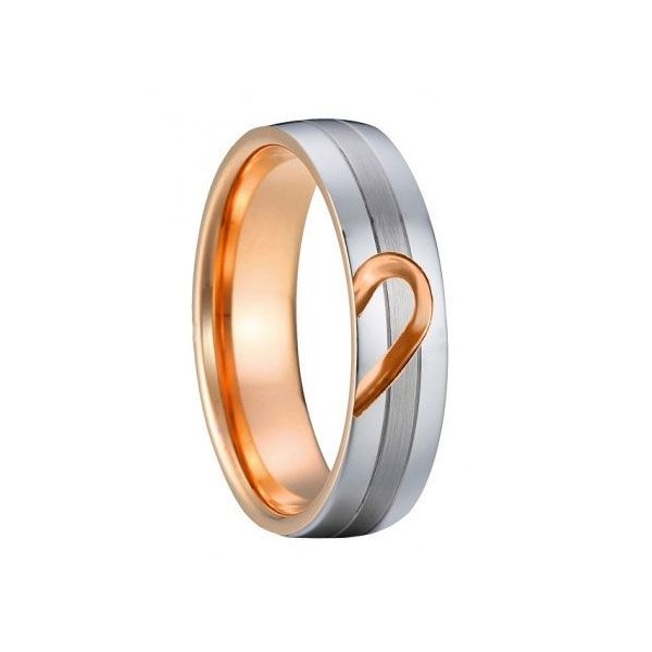 Pánský ocelový prsten zdobený symbolem poloviny srdce se zlacenou výplní