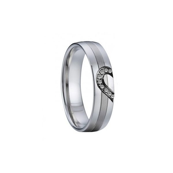 Dámský ocelový prsten zdobený symbolem poloviny srdce osázeného zirkony čiré barvy