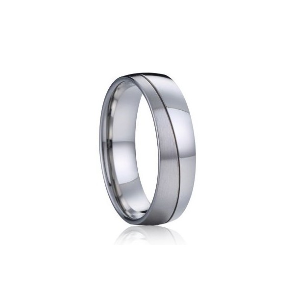 Pánský snubní ocelový prsten zdobený kombinací matné a lesklé povrchové úpravy