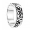 Prsten je zdoben 9ti kubickými zirkony černé barvy vysázenými do jedné řady. Zirkony jsou doplněny romantickým květinovým dekorem, který z prstenu činí velmi jemný a originální šperk.