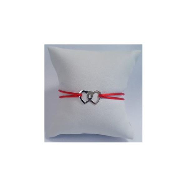 Červený textilní náramek dvě srdce, Ag 925
