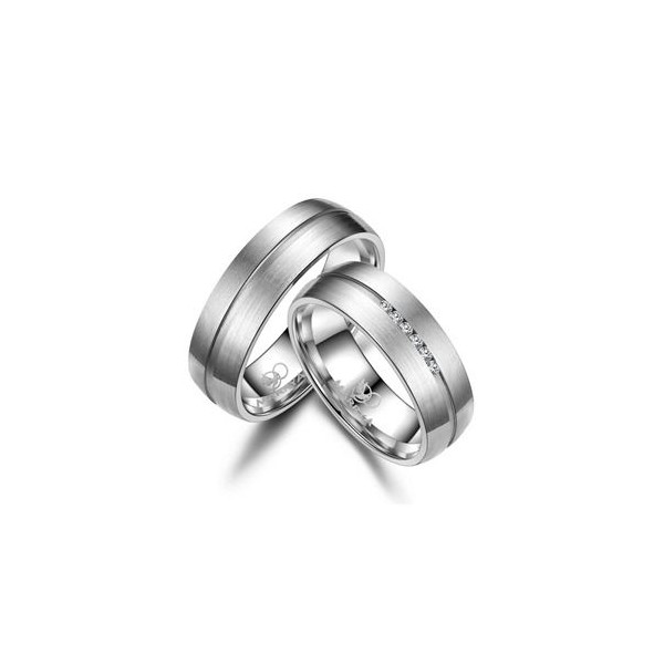 Dámský prsten má matný povrch a je dekorován decentní středovou drážkou do které jsou vsazeny zirkony čiré barvy