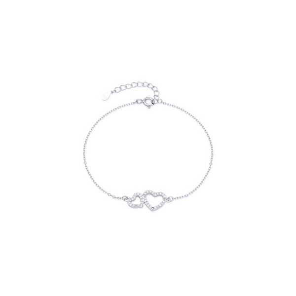 Dámský stříbrný náramek dekorovaný přívěškem ve tvaru spojených srdíček