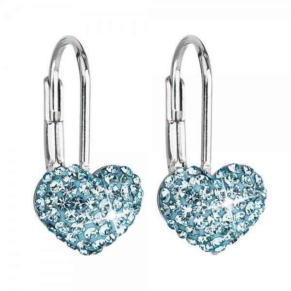Dívčí stříbrné náušnice srdíčka s krystaly Crystals from Swarovski® Aqua