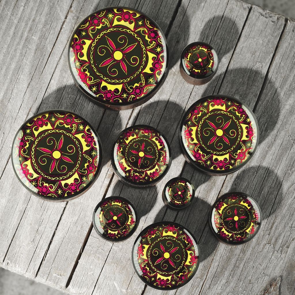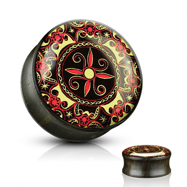 Dřevěný plug do ucha zdobený ornamenty