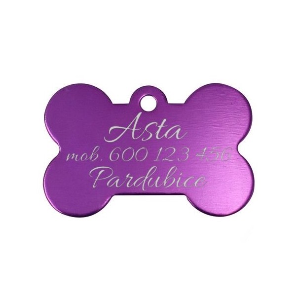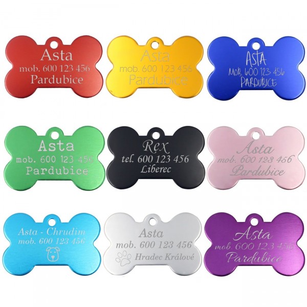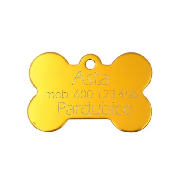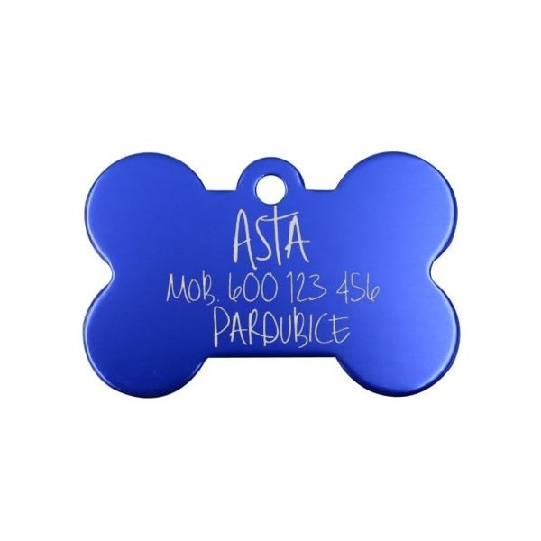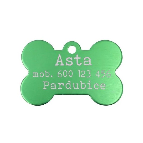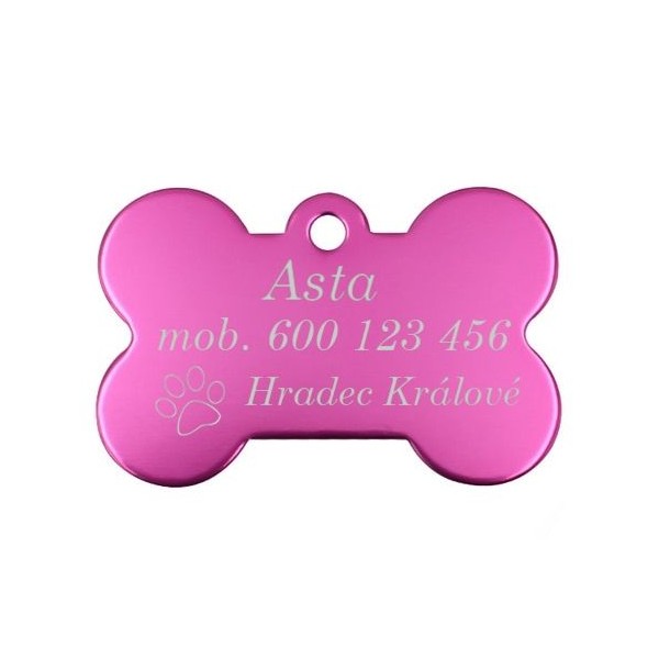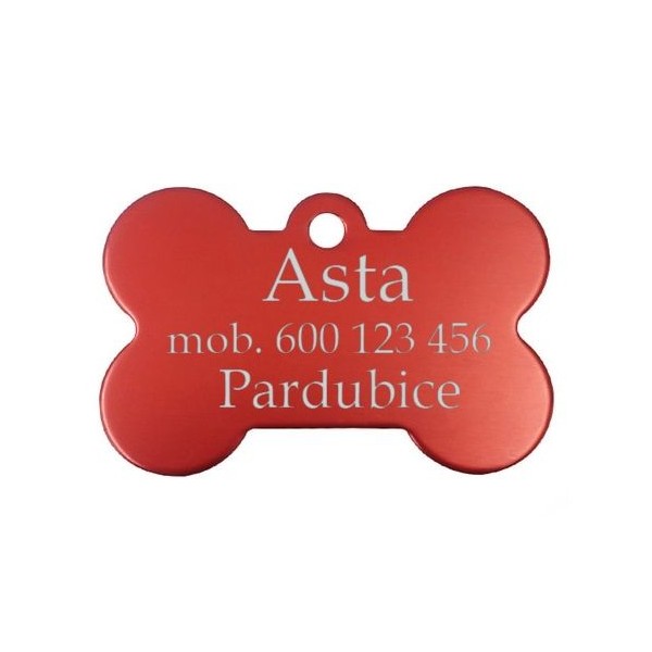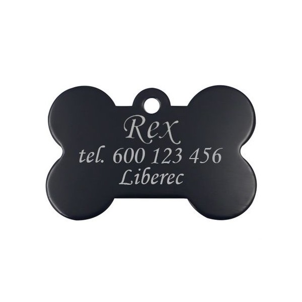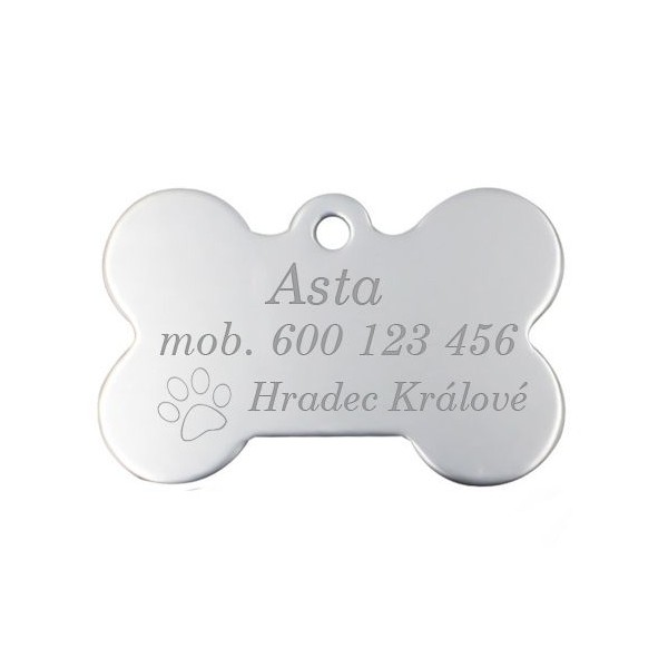 Hliníková identifikační psí známka v podobě kosti
