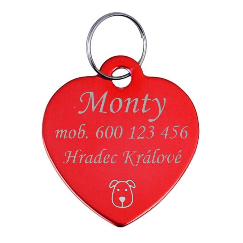 Hliníková identifikační psí známka ve tvaru srdíčka