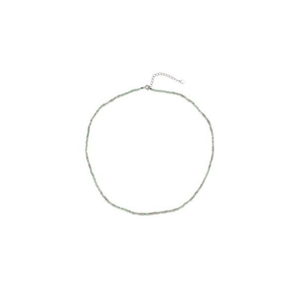 Náhrdelník je vyroben z přírodních korálků Aventurínu, které jsou doplněny kuličkami ze stříbra jakosti 925 povrchově upravenými rhodiovaním.