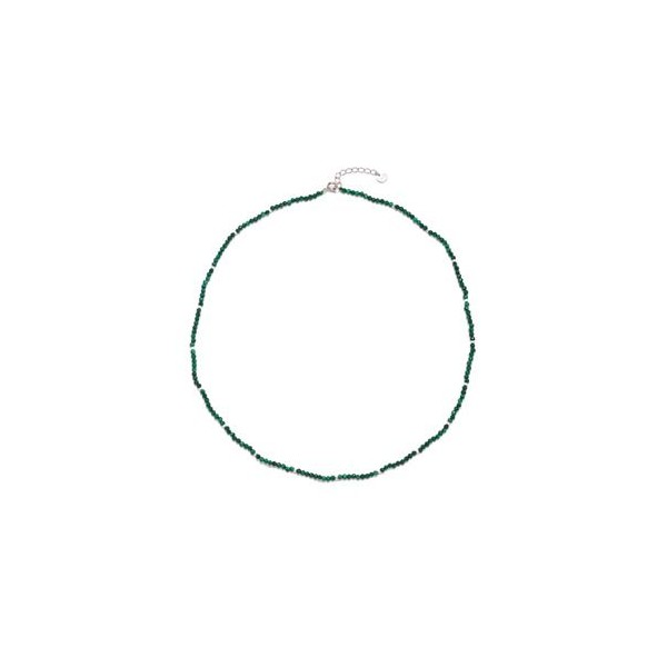 Šperk je vyroben z broušených přírodních korálků malachitu, které jsou doplněny kuličkami ze stříbra jakosti 925 povrchově upraveného rhodiovaním.