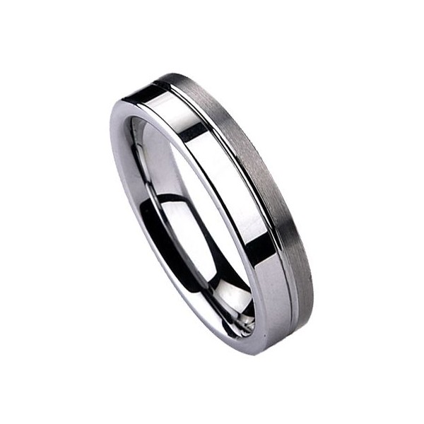 Pánský Wolframový snubní prsten vyrobený v kombinaci matné a lesklé povrchové úpravy