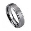 Snubní wolframový prsten zdobený matným pruhem ve středové linii