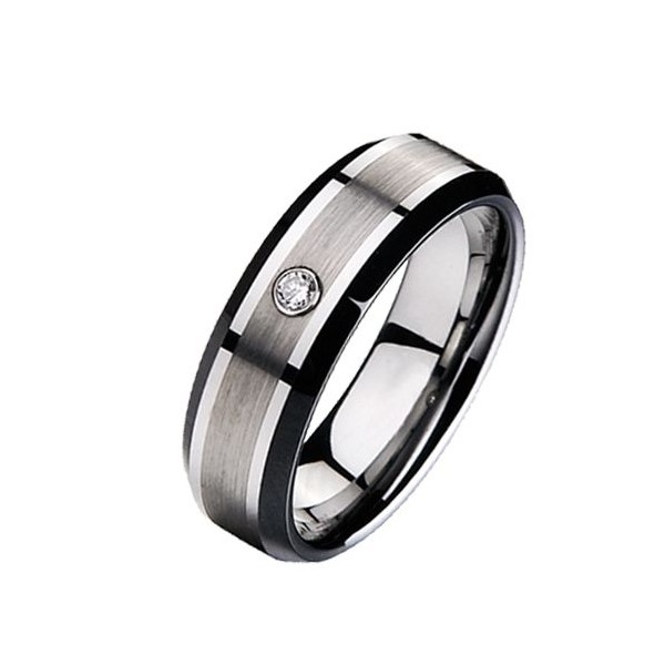 Dámský snubní wolframový prsteny zdobené matným pruhem ve středové linii