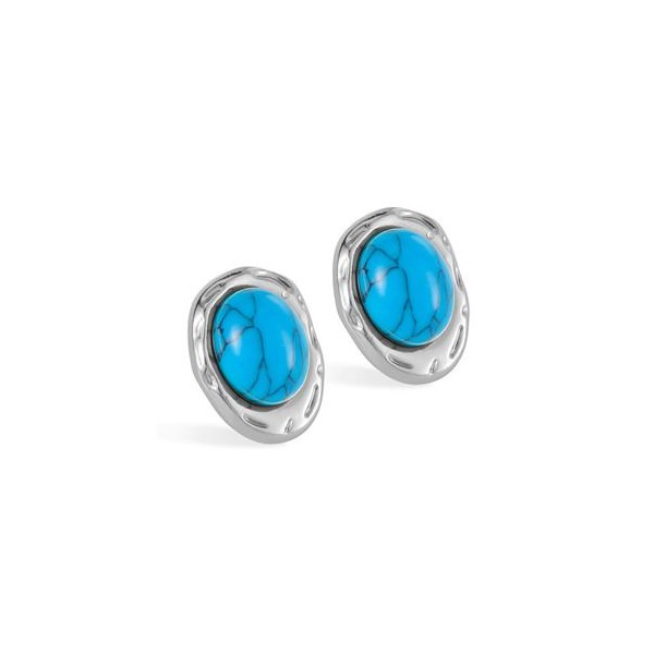 Leštěné ocelové náušnice dekorované tyrkysovými kameny