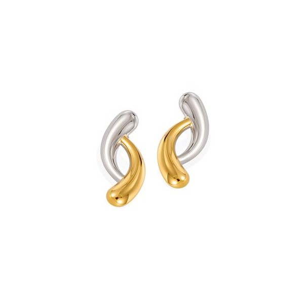 Náušnice jsou vyrobeny z nezávadné jakostní nerezové oceli a mají kombinovanou lesklou povrchovou úpravu a úpravu v barvě žlutého zlata