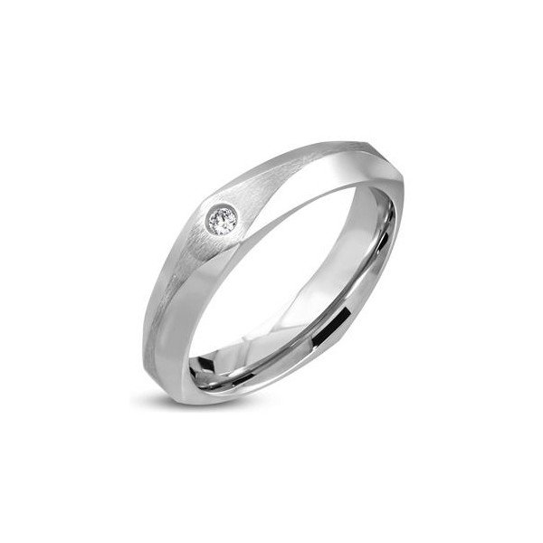 Ocelový prsten zhanatého tvaru zdobený zirkonem čiré barvy