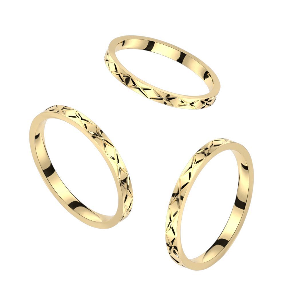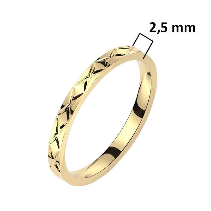 Prsten je vyroben z chirurgické oceli s jakostním označením 316L a má povrchovou úpravu v barvě žlutého zlata