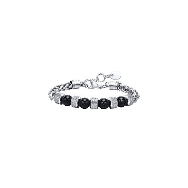Pánský ocelový náramek kombinovaný s černými kuličkami