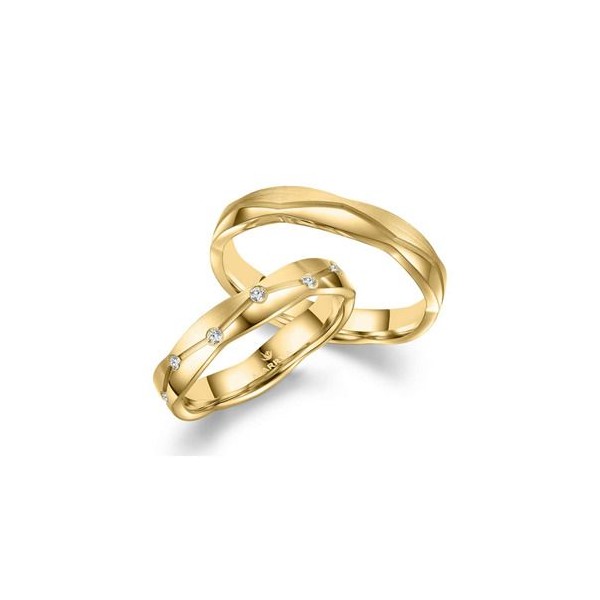 Pánský prsten s povrchovou úpravu v barvě žlutého zlata. Prsten má jemně zaoblený profil a je pro pohodlné nošení je uvnitř bombírovaný.