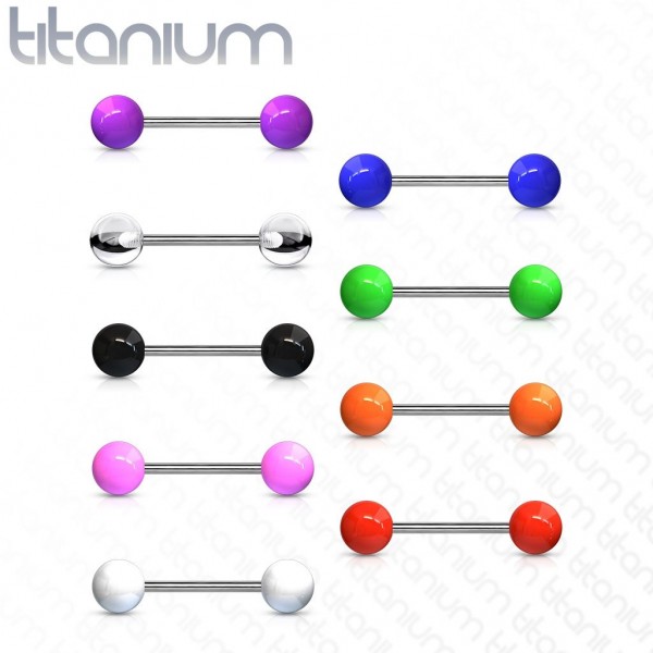 Titanový piercing do jazyku s akrylátovými kuličkami