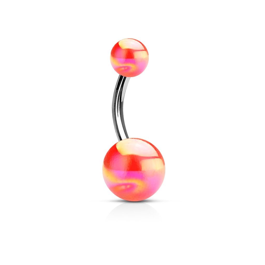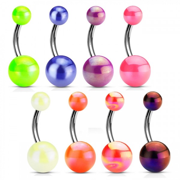 Piercing do pupíku - banánek s kuličkami v metalické barvě
