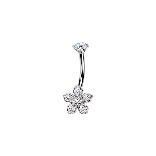 Luxusní titanový piercing do pupíku osazený překrásně třpytivými zirkony čiré barvy