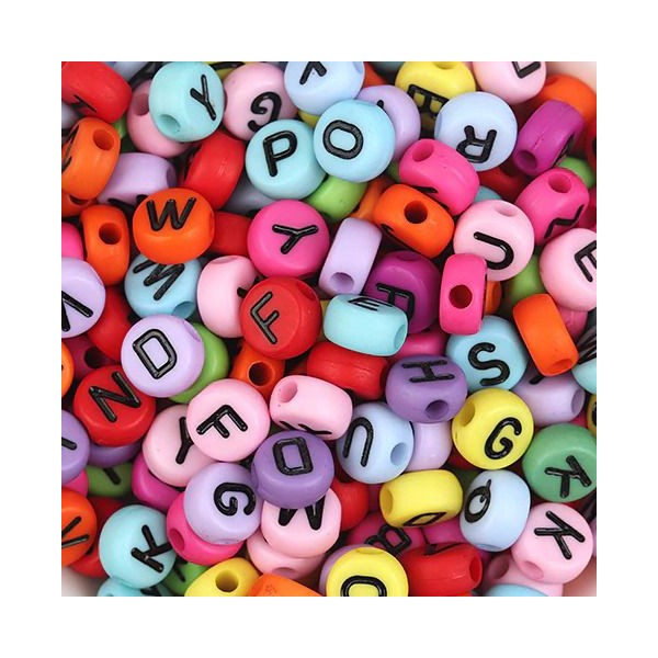 Korálek je vyroben z barevného plastu a je zdoben černým písmenem A