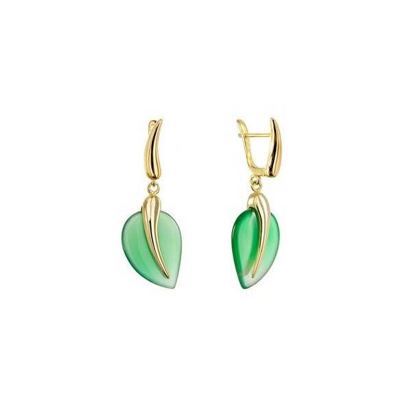 Náušnice jsou vyrobeny z pozlaceného stříbra ryzosti 925/1000. Zlacený povrch dodává šperku teplý, jemný nádech. Jedinečný design šperku v podobě vkusných lístečků z pravých achátů zaujme na první pohled. Achát s výraznou zelenou barvou připomíná svěžest jarní krajiny. Zapínání náušnic na ruský patent zajistí pohodlné a spolehlivé nošení.
