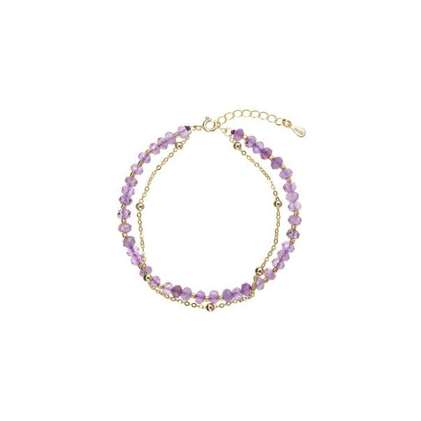 Tento jemný dvojitý náramek spojuje elegantní pozlacený stříbrný řetízek s linií korálků z pravých ametystů v krásných fialových tónech. Ametyst je ceněný pro svůj harmonizující vzhled a sytou, avšak jemnou barvu, která dodává šperku noblesní a svěží nádech. Pozlacené stříbro 925/1000 zaručuje teplý zlatavý lesk a zároveň dobrou odolnost vůči opotřebení. Díky karabince a prodlužovacímu řetízku lze náramek upravit ze 17 cm o další 4 cm.