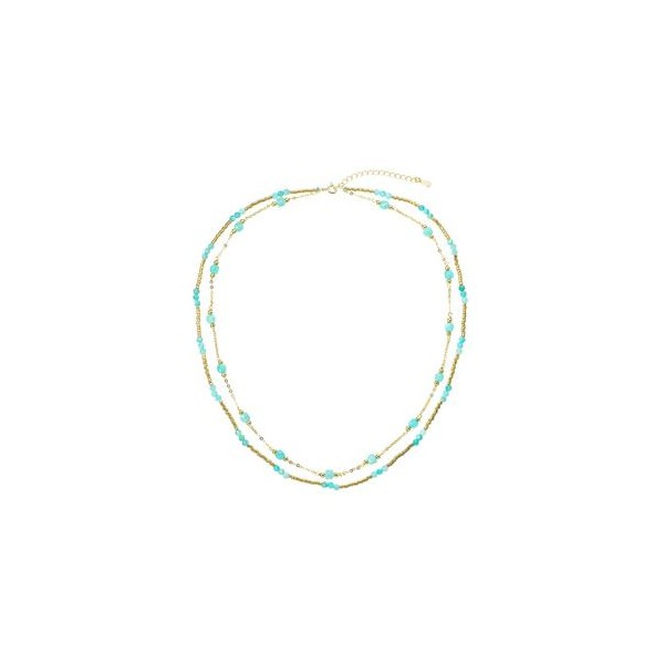Okouzlující jemný dvouřadý náhrdelník s drobnými přírodními kamínky amazonity působí lehce a elegantně.