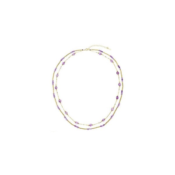 Okouzlující jemný dvouřadý náhrdelník s drobnými přírodními kamínky ametysty působí lehce a elegantně.