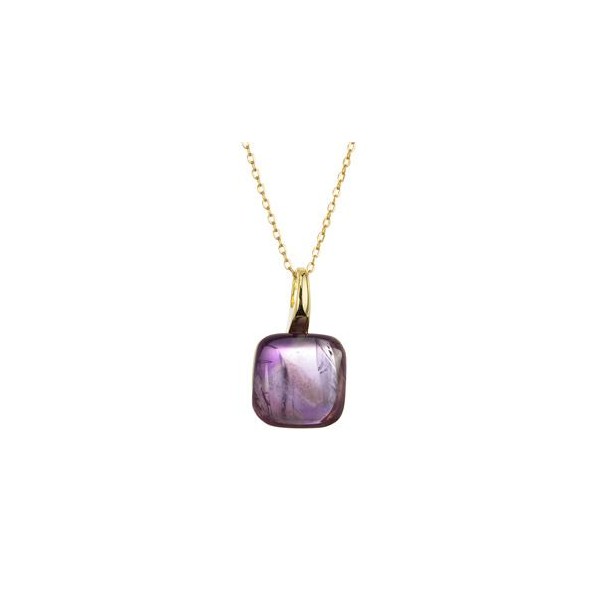 Náhrdelník s přívěskem je uměleckým dílem, který spojuje jemný lesk pozlaceného stříbra ryzosti 925/1000 s mystickou krásou přírodního ametystu. Luxusní přívěsek ve tvaru čtverce osazený sytým fialovým ametystem vás vtáhne do světa tajemství a vnitřní síly. Geometrický tvar kamene symbolizuje stabilitu a rovnováhu, zatímco jeho intenzivní fialová barva připomíná hloubku soumraku.