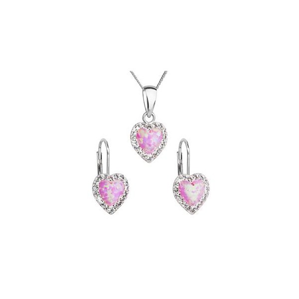 Ozdobte se originálními a elegantními šperky ze soupravy, které se hodí k jakémukoliv outfitu. Sada obsahuje visací náušnice a řetízek s přívěskem ve tvaru srdíčka. Šperky jsou vyrobeny ze stříbra ryzosti 925/1000, které prošlo povrchovou úpravou rhodiem. Rhodium chrání šperk proti zčernání, zežloutnutí i poškrábání. Přívěšek i náušnice jsou zdobeny růžovým syntetickým opálem, který je navíc olemován ještě malými třpytivými Preciosa krystalky v bílé barvě. Náušnice mají zapínání na klapku. Jelikož šperky neobsahuji žádný přídavek niklu, mohou je bez obav nosit i alergici. Sadu šperků s Preciosa krystaly pro vás ručně vyrobily šikovné šperkařky. Šperky vám ZDARMA zabalíme do krabičky.