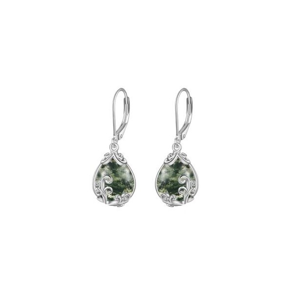 Visací náušnice ze stříbra s jakostním označením 925/1000 dekorované překrásnými přírodními kameny mechového achátu