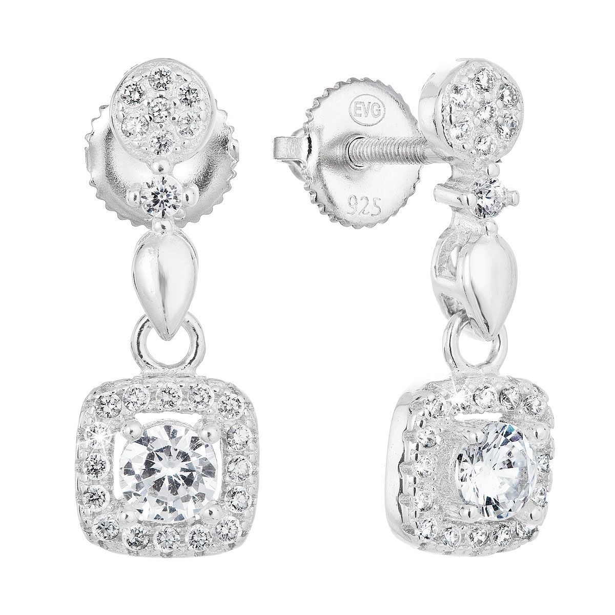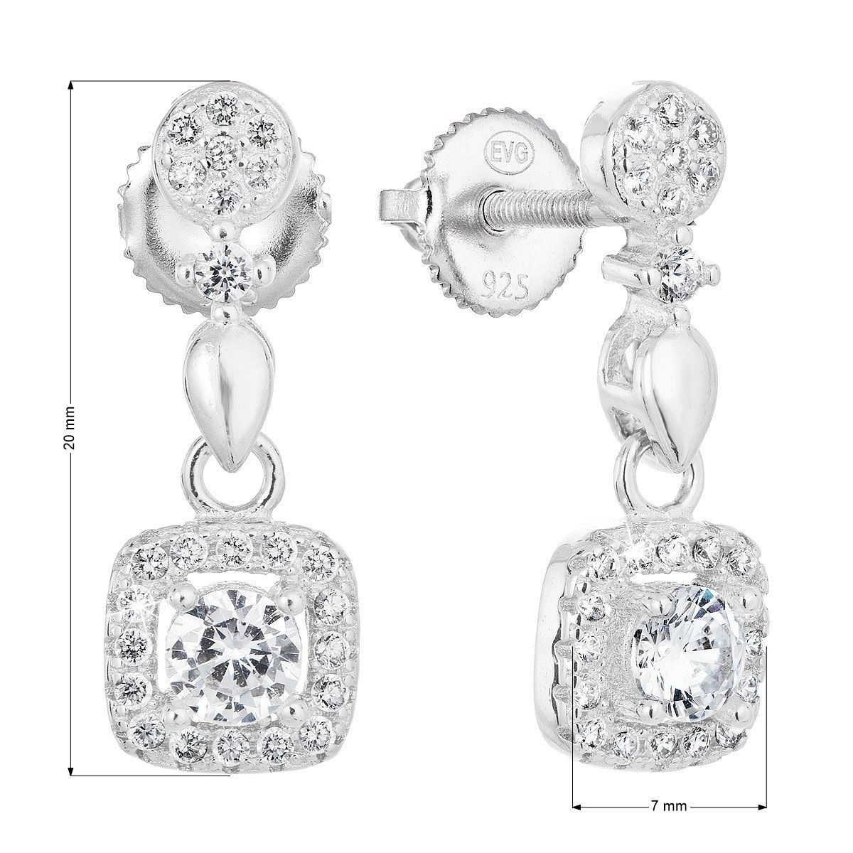 Nádherné elegantní náušnice luxusního vzhledu bohatě vykládané třpytivými krystalky s dominantním kosočtvercovým krystalem , který zaujme na první pohled a dokonale zvýrazní váš půvab. Náušnice jsou vykládány precizně broušenými kubickými zirkony,kterým dominuje krásně broušený obdélníkový zirkon v čiré barvě. Náušnice se zapínají na klapku, která zabezpečí ochranu proti ztrátě. Šperk je vyrobený z kvalitního stříbra o ryzosti 925/1000. Jako povrchová úprava je zde použito rhodium, které dodává šperku vysoký lesk, pevnost a odolnost vůči černání a žloutnutí.