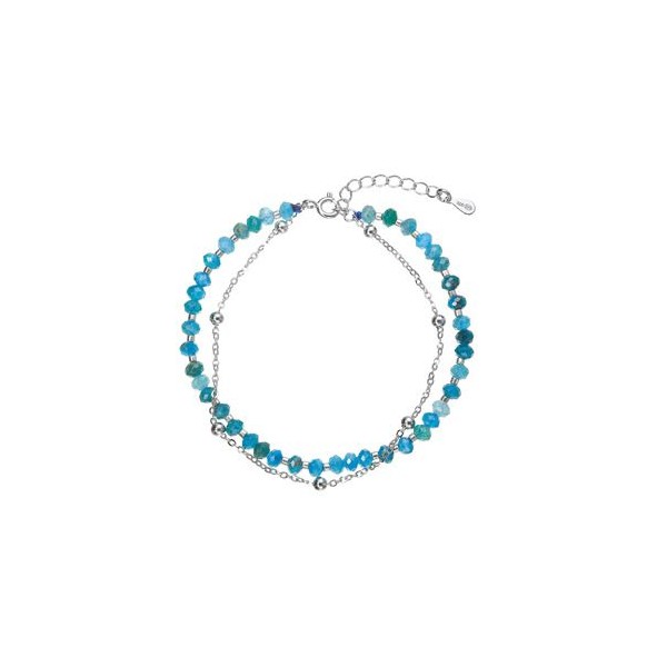 Tento jemný dvojitý náramek spojuje elegantní stříbrný řetízek s linií korálků z pravých apatitů v hlubokých modrých až zelených odstínech. Apatit je ceněný pro svou výraznou, energizující barvu, která šperku dodává svěžest a moderní charakter. Stříbro 925/1000 zajišťuje přirozený lesk a dlouhou životnost. Díky karabince a prodlužovacímu řetízku lze náramek pohodlně upravit ze 17 cm o další 4 cm.