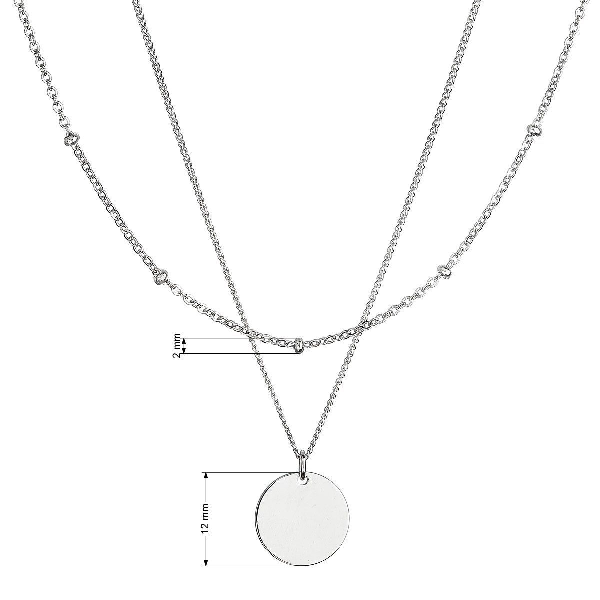 Dvojitý stříbrný náhrdelník dekorovaný přívěškem kulatého tvaru