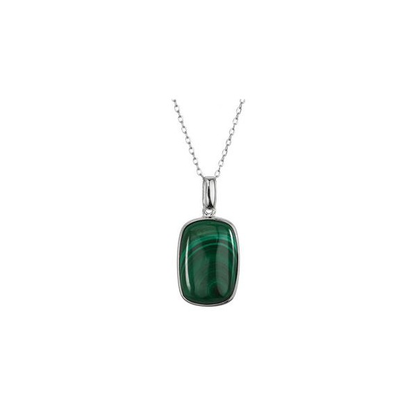 Náhrdelník s přívěskem je vyroben ze stříbra ryzosti 925/1000 s rhodiovanou úpravou, která poskytuje šperku maximální ochranu a čistý, zářivý lesk. Precizně zasazený přírodní malachit s charakteristickou sytě zelenou barvou a unikátní kresbou zaplňuje obdélníkový přívěsek. Jemná stříbrná linka lemující kámen vytváří harmonický a dynamický celek, který zachycuje tajemnou energii zelených hlubin v jediném okamžiku.