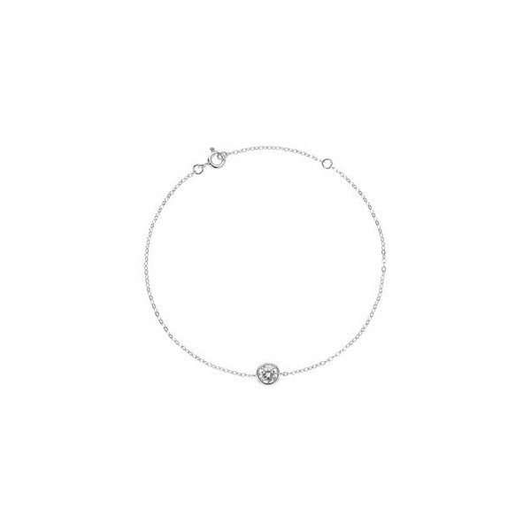 Elegantní stříbrný náramek zdobený jedním kulatým moissanitem, jedinečný zářivý klenot na vašem zápěstí. Náramek je vyroben z rhodiovaného stříbra ryzosti 925/1000. Rhodiová vrstva zajišťuje luxusní lesk šperku a jeho dlouhotrvající odolnost. Nastavitelná délka náramku a pohodlné zapínání na karabinku z něj činí dokonalý doplněk pro každou příležitost.