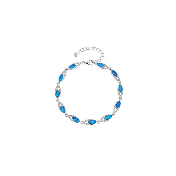 Dámský stříbrný náramek dekorovaný syntetickými modrými opály a zirkony