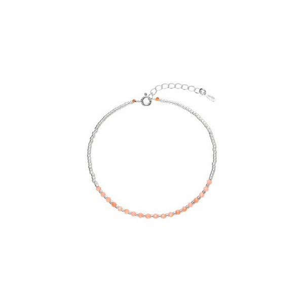 Tento jemný náramek je vyroben z kvalitního stříbra a zdoben drobnými korálky z pravého oranžového korálu. Skládá se z malých stříbrných korálků, které tvoří větší část náramku, a z části s teplými oranžovými kamínky korálu, jež mu dodávají energický a zářivý vzhled.