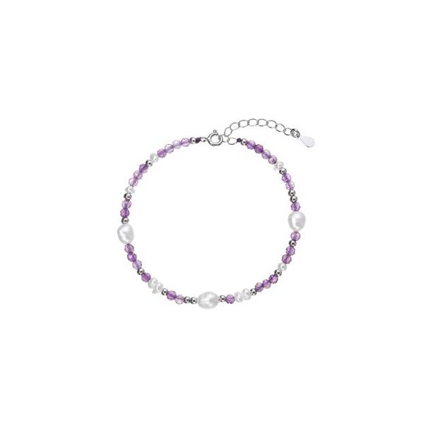 Tento elegantní náramek je tvořen kombinací pravých ametystů v jemně fialové barvě a pravých říčních perel různých tvarů, které dohromady vytvářejí harmonický a ženský celek. Drobné broušené ametysty se krásně lesknou a dokonale ladí s přirozeným perleťovým třpytem perel.
