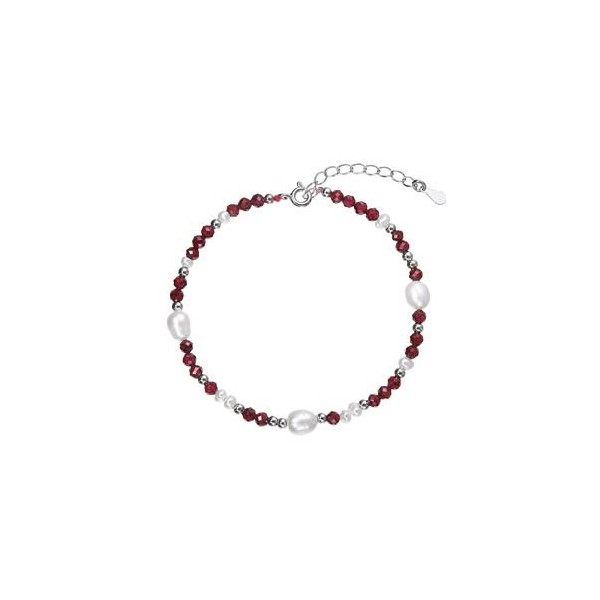 Tento elegantní náramek je tvořen kombinací pravých říčních perel různých tvarů a drobných korálků temně červeného granátu. Lesklé perly s jemným perleťovým odleskem krásně kontrastují se sytou, hlubokou barvou granátu, která šperku dodává výrazný a luxusní charakter.