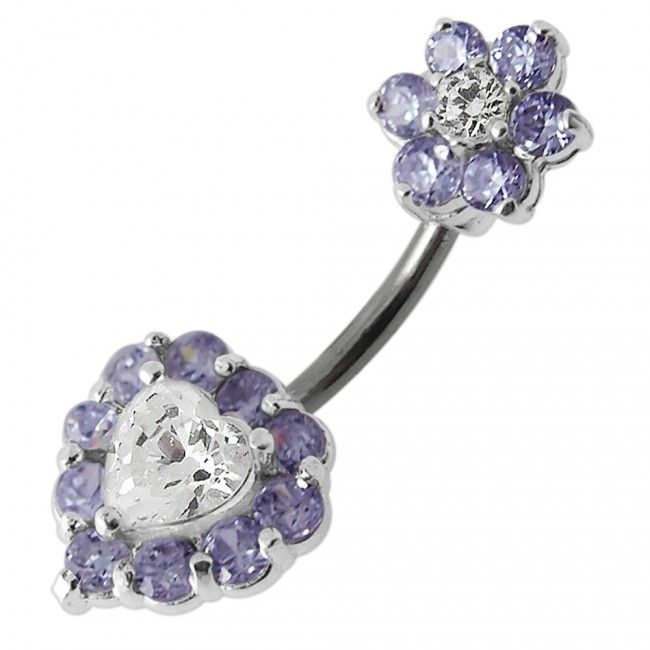 Stříbrný piercing do pupíku s kamínky