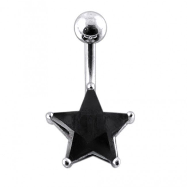 Stříbrný piercing do pupíku se zirkonem ve tvaru hvězdy