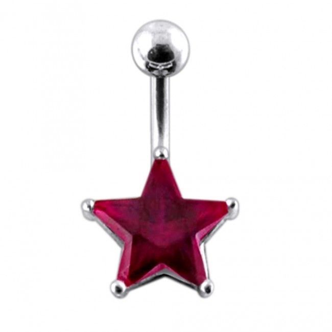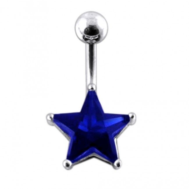 Stříbrný piercing do pupíku se zirkonem ve tvaru hvězdy
