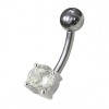 Stříbrný piercing do pupíku - kulatý zirkon 6 mm