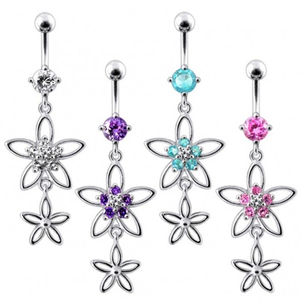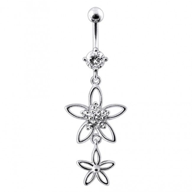 Stříbrný piercing do pupíku zdobený kytičkami
