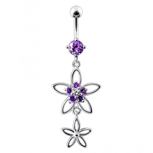 Stříbrný piercing do pupíku - kytičky (fialová)