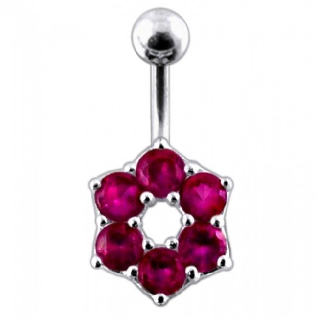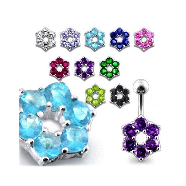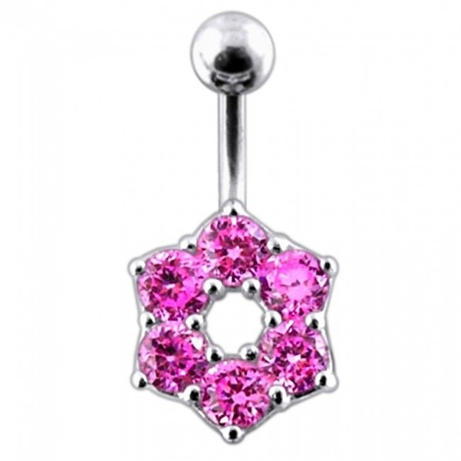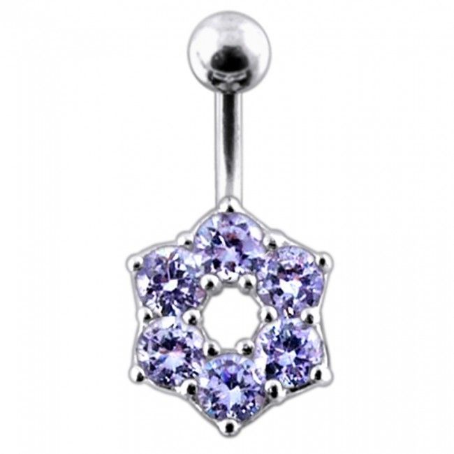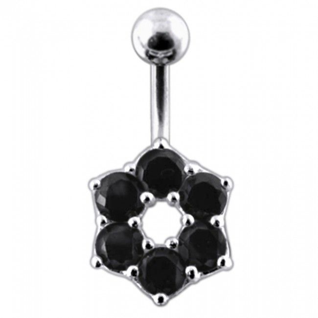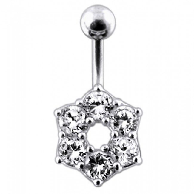 Stříbrný piercing do pupíku ve tvaru kytičky zdobené zirkony