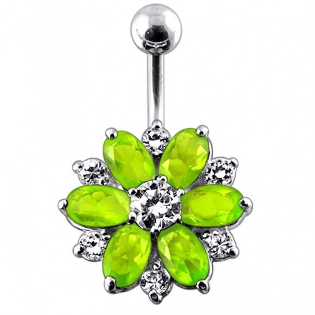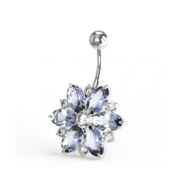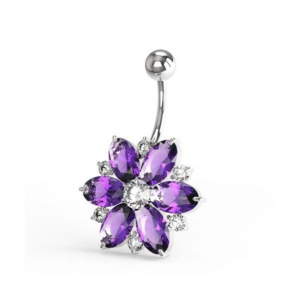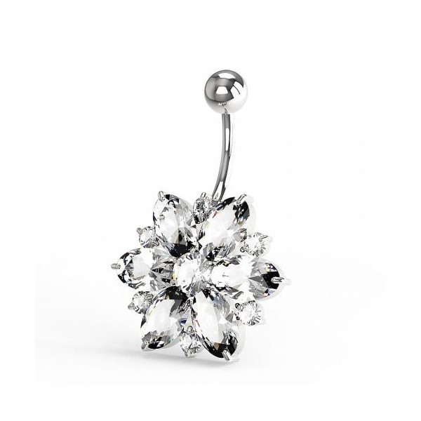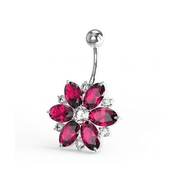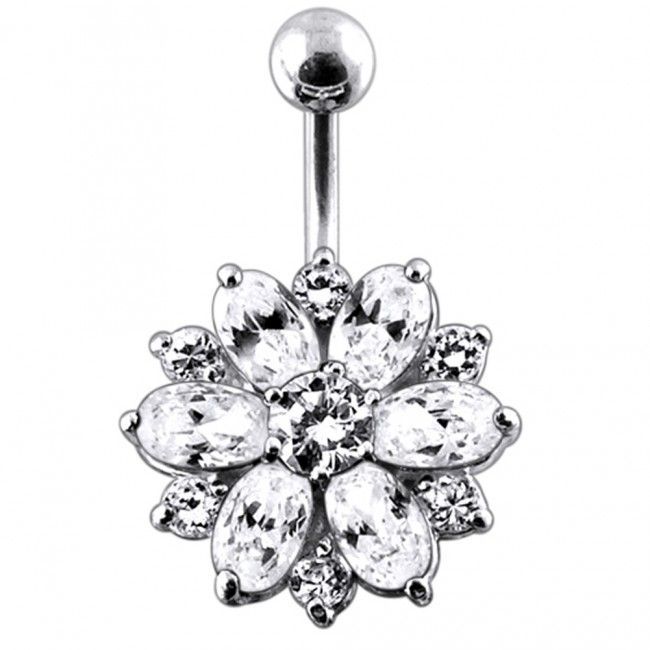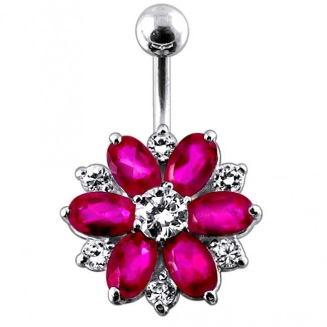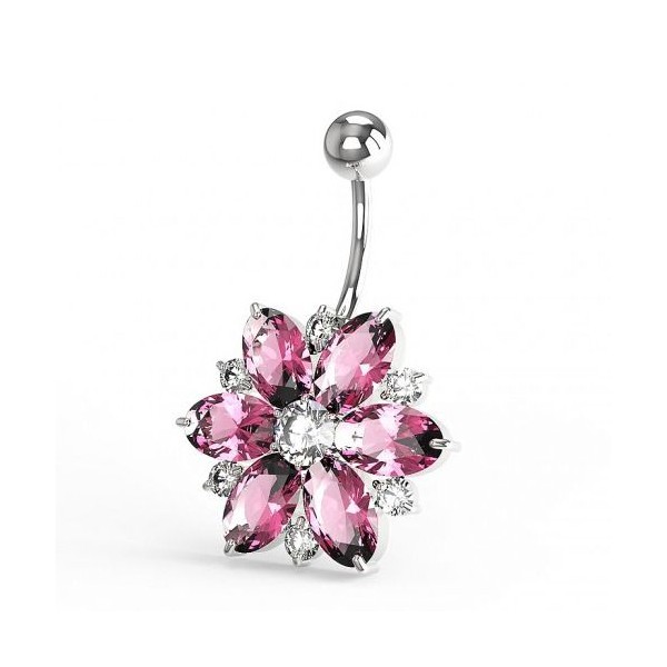 Stříbrný piercing do pupíku - kytička (čirá/růžová)